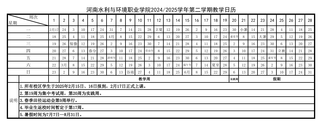 2024/2025学年第二学期教学日历现已发布,为方便安排工作,请查阅或下载。
