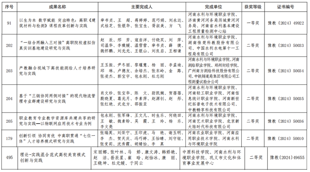 近日,河南省教育厅下发了《关于公布2024年度河南省高等教育教学成果奖获奖项目名单的通知》(教高〔2024〕363号),ylzzcom永利总站线路检测荣获省高等教育教学成果奖7项,其中一等奖1项、二等奖6项。