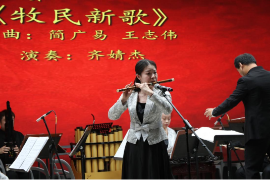 在一个半小时的演出中,河南民族乐团的演奏家们带来了10首经典曲目,琵琶、扬琴、笛子、柳琴、二胡、唢呐、笙、中阮等民族乐器汇聚一堂,让师生对传统民族乐器有了更加深入的了解。民族管弦乐《北京喜讯传边塞》勾勒出边塞人民听闻喜讯后的狂欢场景,以充满激情的旋律拉开了整场演出的序幕。笛子独奏《牧民新歌》、琵琶独奏《十面埋伏》、二胡齐奏《新赛马》、唢呐独奏《百鸟朝凤》等风格迥异的作品轮番上场,河南民族乐团的演奏家们用高超精湛的技艺,为师生献上一场精彩的视听盛宴。