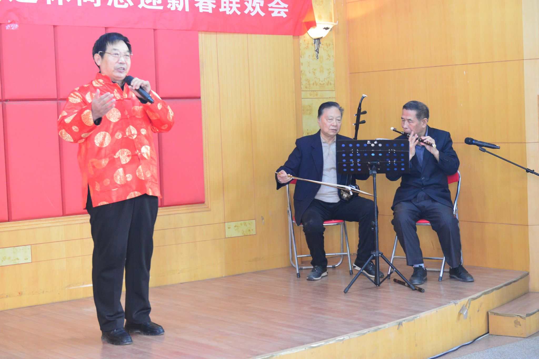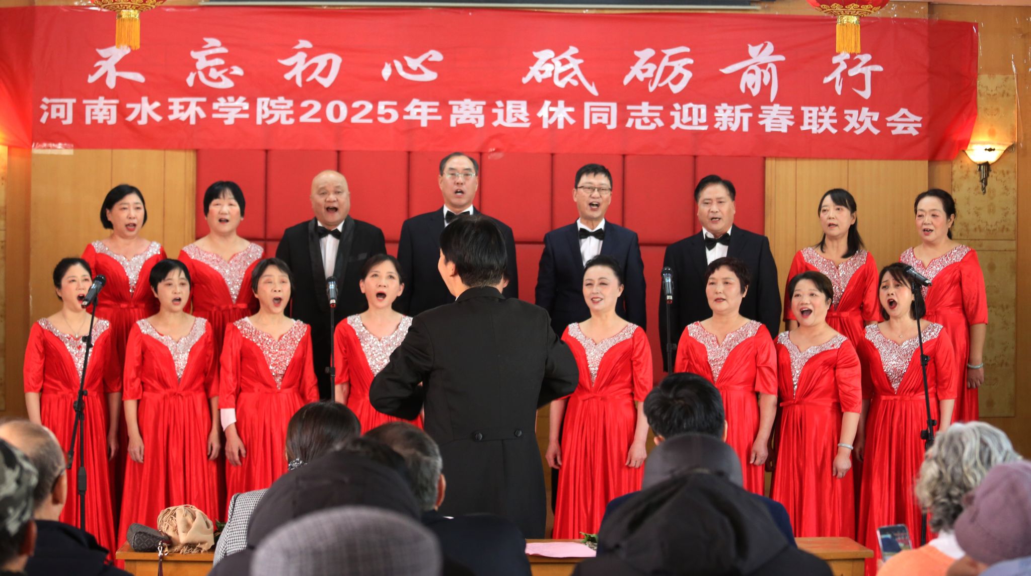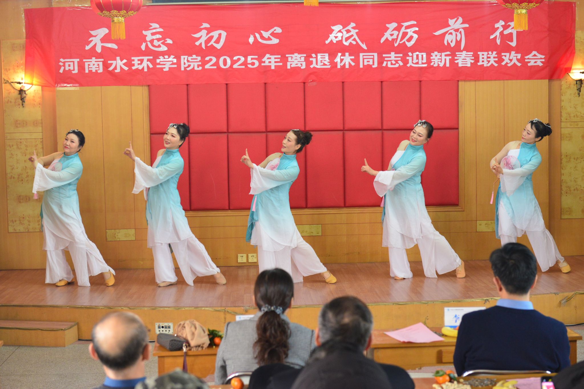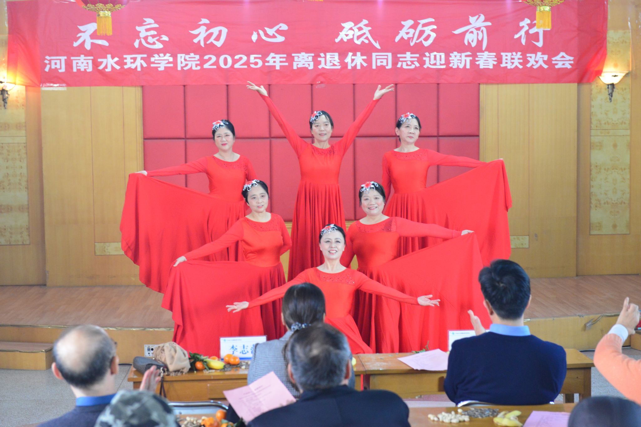 迎新春联欢会以离退休合唱队的《春风十万里》、《老师我想你》开幕,歌声包含了对学校的热爱和深情,将现场氛围点燃;离退休舞蹈队表演的舞蹈《我和我的祖国》令人眼前一亮,舞姿美不胜收,表达了对祖国的祝福和对美好生活的追求;独唱《女儿情》、歌曲《沁园春﹒雪》《草原上升起不落的太阳》、舞蹈《千古一醉》等节目将演出一次次推向高潮,博得满堂喝彩;联欢会在歌曲《苹果香》中结束,传达了美好祝福,情真意切。会场气氛热烈、祥和,处处洋溢着喜庆、欢快的节日气氛。