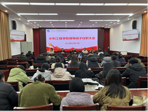 2月15日,水利工程学院领导班子任职大会在花园路校区举行。会议由院长邢芳主持,校长李志萍出席,学院领导班子成员及全体教职工参会。