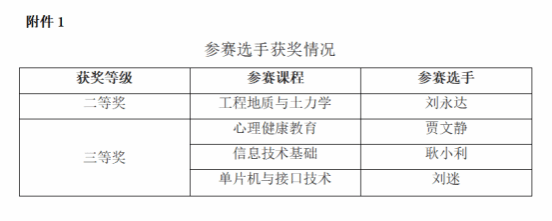 自比赛开始以来,学校高度重视,校领导多次亲临现场指导,教务处积极组织,教学单位认真落实。各参赛教师认真准备,合理设置课程体系和教学目标,突出教学重点,创新教学方法,丰富教学手段,充分利用网络教学资源,实现了现代教育技术与传统课堂的深度融合。