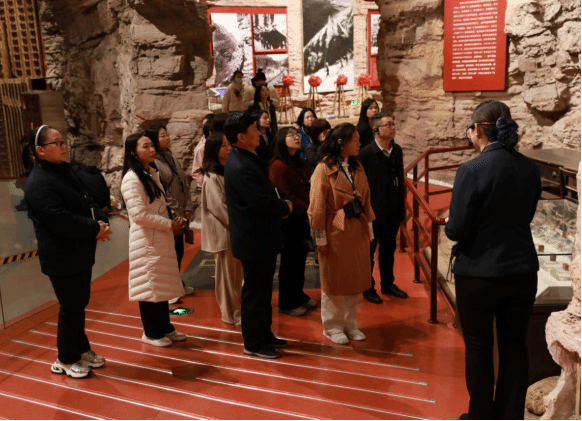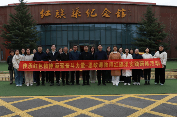 仪式结束后,随即开展了“传承红色精神 凝聚奋斗力量-思政课教师红旗渠实践研修活动”。在活动现场,思政课教师们跟随讲解员一起走进了红旗渠纪念馆,通过参观学习图文资料、历史文物、沙盘模型,感受当年林县人民为改变恶劣的缺水条件,干部身先士卒、群众团结一心,不畏艰难、艰苦奋斗的精神。在实地走“红飘带”、登“水长城”、观摩咽喉工程“青年洞”后,大家无不为林县人民自强不息、撼天动地的无畏壮举所感动。