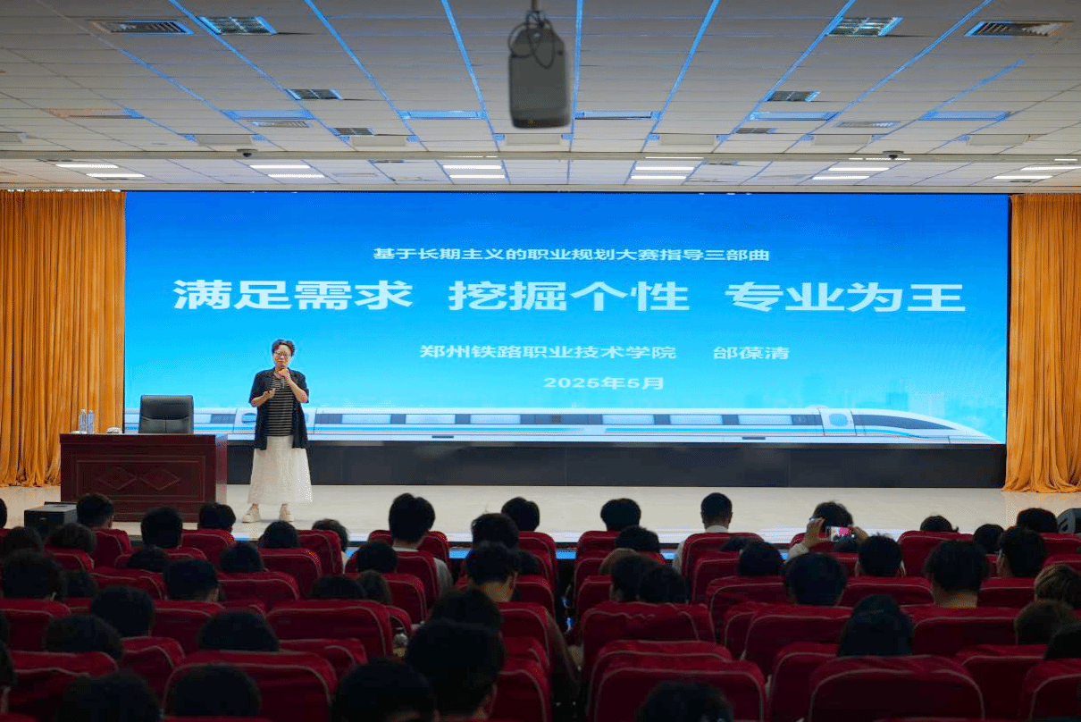 讲座特邀郑州铁路职业技术学院就业与创业指导教研室主任、教育部首届全国大学生职业规划大赛就业赛道金奖第一指导教师邰葆清教授,以“基于长期主义的职业规划大赛指导三部曲”为题,从“趋势解读-案例剖析-策略建构”三维视角,深度阐释大赛“以赛促教、以赛促学、以赛促就”的核心要义,解析职业规划教育价值与赛事育人逻辑。针对成长、就业赛道不同评审标准,邰教授提出“四维培育法”,助力学生立足产业需求构建能力图谱、突破认知困境激活发展潜能、依托专业优势打造个人IP、对标评审要素设计展示路径。