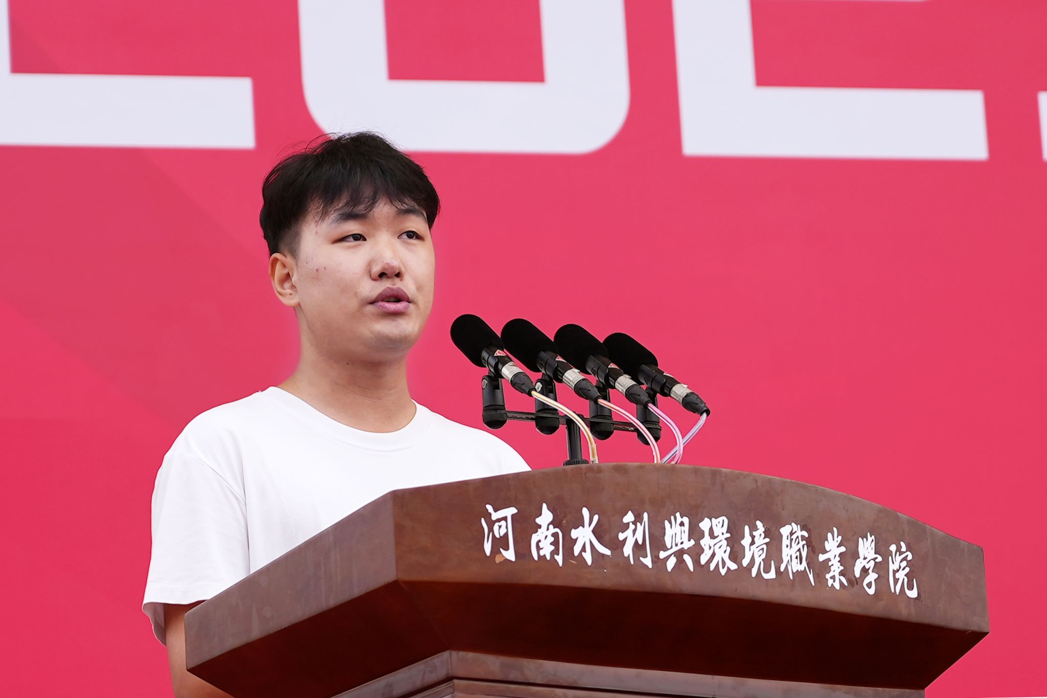 机电工程学院25电气4班的田雨璐、经济管理学院25港口1班的陈昱昊同学作为新生代表发言。