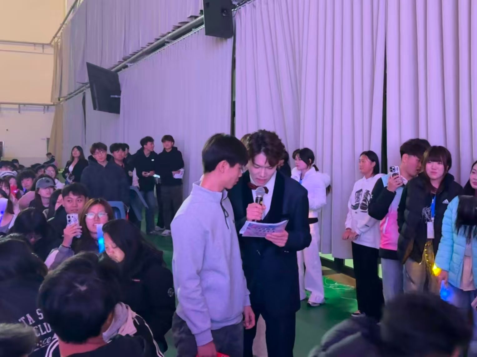 本届大赛创新融入安全教育元素,在互动环节设置消防安全、防诈骗知识趣味问答。主持人以轻松幽默的方式引导提问,现场观众踊跃参与、积极抢答,在欢乐氛围中强化了安全防范意识,提升了风险识别与应对能力,实现了"以赛促学、寓教于乐"的良好效果。