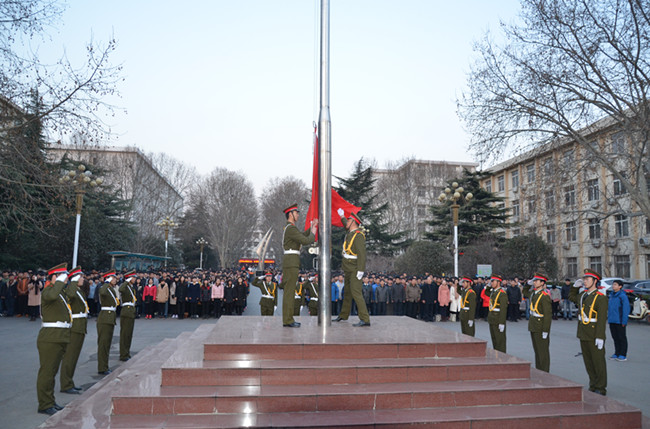 升旗仪式结束后,首先由学生代表龙振乾发言,倡议同学们努力学习,珍惜时间,养成良好生活习惯,同时也祝愿学院能够更好更快发展。随后,副院长惠大众做了讲话,他对全体学工老师提出了几点要求:要加强大中专学生思想政治教育工作;要加强学生日常管理,服务学生成长成才;要加强学生工作队伍建设,夯实学生工作基础;要把握学生工作关键环节,大力推进学风建设。同时也对同学们提出了两点希望:第一,希望同学们立德修身,扣好人生的第一粒扣子。每位同学都能将社会主义核心价值观融化在心里,铭记在头脑,体现在行动中。希望每一位水院学子都能将你们的青春梦想,根植在“中国梦”这片广阔土壤之上,将你们的思想行为,立足于“核心价值观”这一社会准则之中,肩负起民族的使命。尊重教师、奉献集体、坚于立志、勇于担当……努力使自己成为一个具有民族精神、家国情怀、国际视野的有为青年。第二,立志成才、永不言弃。任何梦想的实现,都需要有一颗进取的心、一份坚定的信念,一种永不言弃的追求与奋斗精神。希望每一位同学们珍惜学校生活,深刻理解学校文化,让“做堂堂正正有骨气的中国人”的志向、“为中华之崛起”而读书的恩来精神、追求真理勇敢创新的科学风范,扎根于你们的心中,给你们以不断前进的精神力量。最后,惠院长祝愿全体同学在新的一年里勤奋学习、健康成长、全面成才,以优异的学习成绩和突出的素质能力,回报社会、学校、老师和父母。