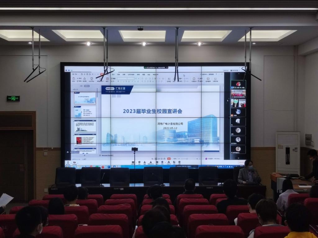 5月12日,ylzzcom永利总站线路检测在花园路校区北教三阶举行河南广电计量检测有限公司线上专场招聘会。校党委委员、副校级干部赵广杰,环境工程系党政负责人、辅导员、毕业班学生,河南广电计量检测有限公司行政人事总监方庆诊、人事经理孙若男、人事主管刘慧杰、行政主管张娅婕、生态环境监测实验室负责人陈涛伟等企业代表参加。本次招聘会由环境工程系主办。