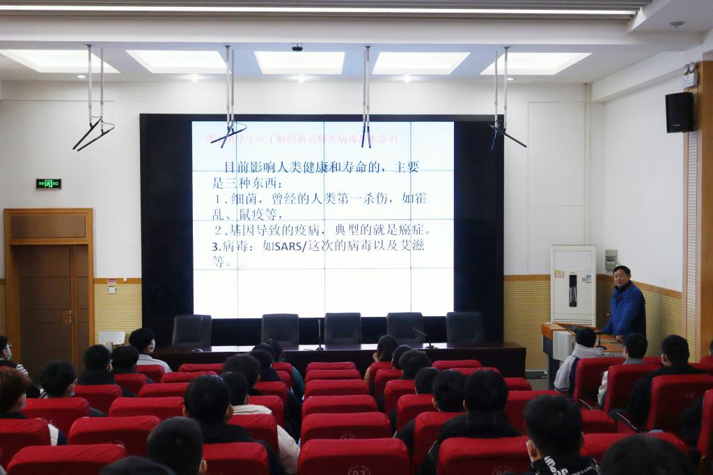 蒋彦成以“新冠疫情带来的新思考”为题,向师生介绍了新冠病毒的基本知识和防护要点,讲述了寒假期间ylzzcom永利总站线路检测学生积极投身家乡防疫一线的典型事例,对大家用实际行动展现新时代青年的担当和作为表示肯定。他强调,同学们要铭记生命至上、举国同心、舍生忘死、尊重科学、命运与共的伟大抗疫精神,要以抗疫英雄为榜样,做担当时代重任的有为青年;要充分认识疫情形势的严峻性,严格遵守学校各项防疫规定,积极配合防疫措施落实,共同筑牢校园安全防线。