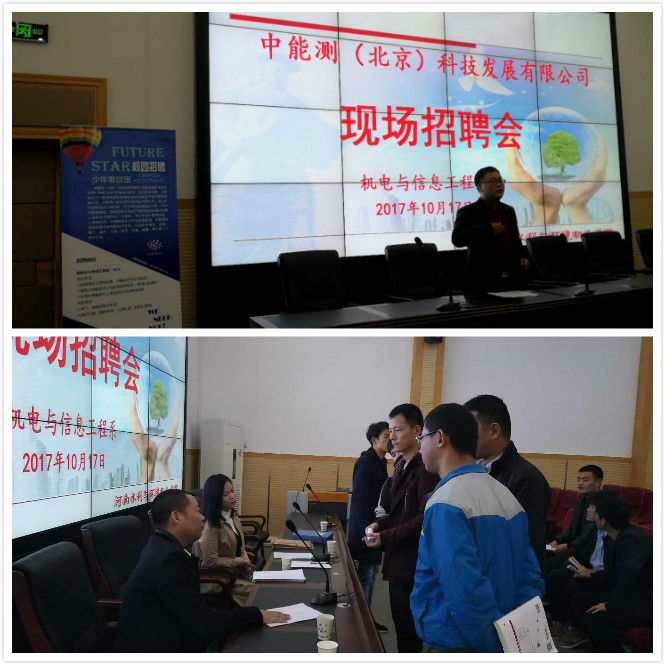 10月17日上午,中能测(北京)科技发展有限公司到我院举办现场招聘会。机电与信息工程系2015级计算机应用技术、电气自动化技术、机电一体化技术等专业的140名学生参加招聘会。