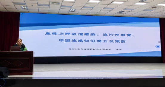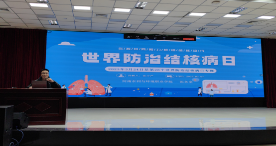 专题讲座在航空港校区德礼讲堂进行,由校医务室医生张少严和李菡主讲,航空港校区管委会主任杨慧丽主持,并以视频形式在花园路校区、信阳校区同时进行。讲座中,张少严从结核病的基本知识、传播途径、危害及防控措施等方面向师生讲解了结核病相关知识,提醒大家要增强自我保健意识,提高防控结核病能力,树立传染病预防理念。李菡就近期“甲流”流行情况和春季呼吸道疾病防控做了简明概述。杨慧丽在总结讲话中,倡导同学门要在校园内广泛宣传讲座内容,成为结核病预防和杜绝传染病在校园内传播的倡导者、行动者、推动者,做好自身健康的第一责任人。整场讲座生动精炼、简明易懂,有利于师生掌握呼吸系统疾病防治知识和技能。