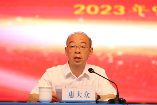 李广慧从主题教育取得扎实成效、教学科研取得新突破、人事改革工作取得新进展、招生就业质量取得新提升、后勤保障服务取得新成绩等方面对学校2023年上半年工作进行了总结回顾。他指出,学校每一分成绩的取得,都离不开全体师生员工的接续努力与奋斗,大家要以先进为榜样,居安思危,正视挑战,勇担使命,积极作为,努力把贯彻党的二十大精神的开局之年变成奋进之年,以实际行动助力学校高质量发展,以求真务实的精神切实肩负起为党育人、为国育才使命。