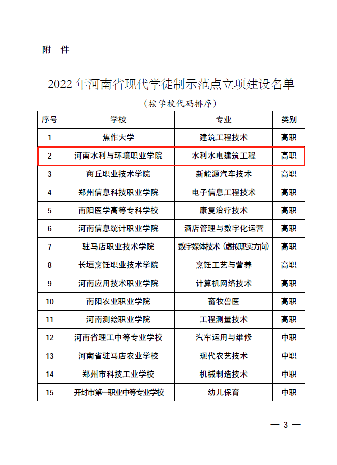 近日,河南省教育厅发布《关于公布2022年河南省现代学徒制示范点立项建设名单的通知》,ylzzcom永利总站线路检测水利水电建筑工程专业现代学徒制人才培养项目成功入选。