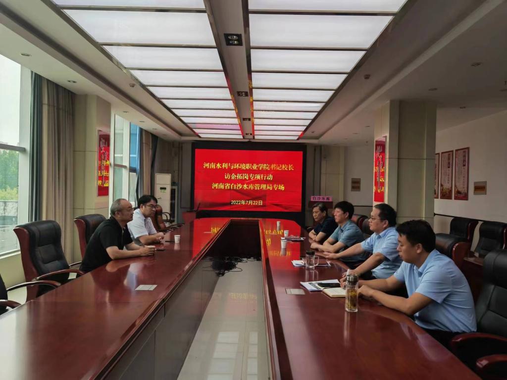 7月22日,校党委书记王立正带领水利工程系负责人赴河南省白沙水库管理局开展“访企拓岗促就业”专项行动。双方召开了座谈会,就产教融合、毕业生就业、实习实践基地建设、科研合作及建立常态化互动渠道等进行了深入交流。河南省白沙水库管理局局长王宏伟、局党委书记罗现斌、副局长董洪涛及有关领导出席座谈会。