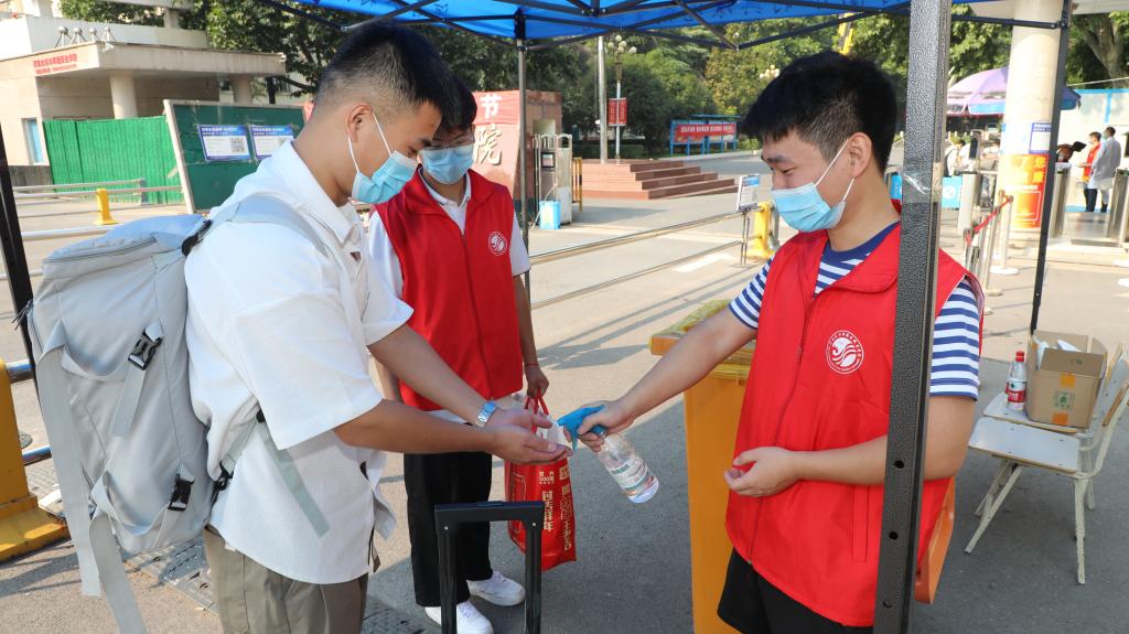 学校在校门口设置返校学生专用通道,工作人员、志愿者细心查验每位返校学生的健康码行程码和48小时核酸检测证明,引导学生进行核酸检测、办理报到手续,并热情地帮助同学们搬运行李。报到现场秩序井然,各项工作有条不紊。