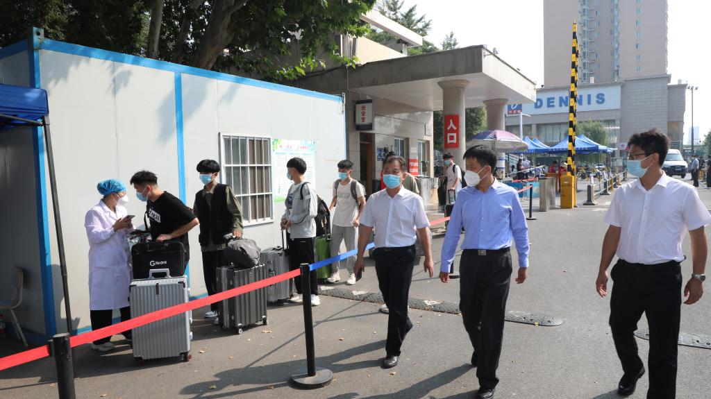 11日上午,校长李广慧、副校长蒋彦成、工会主席魏义军等校领导先后到校门口、餐厅和学生宿舍,了解学生返校情况,检查指导各项准备工作,慰问坚守在一线的教职员工,看望返校学生并进行亲切交流,欢迎他们顺利归来。