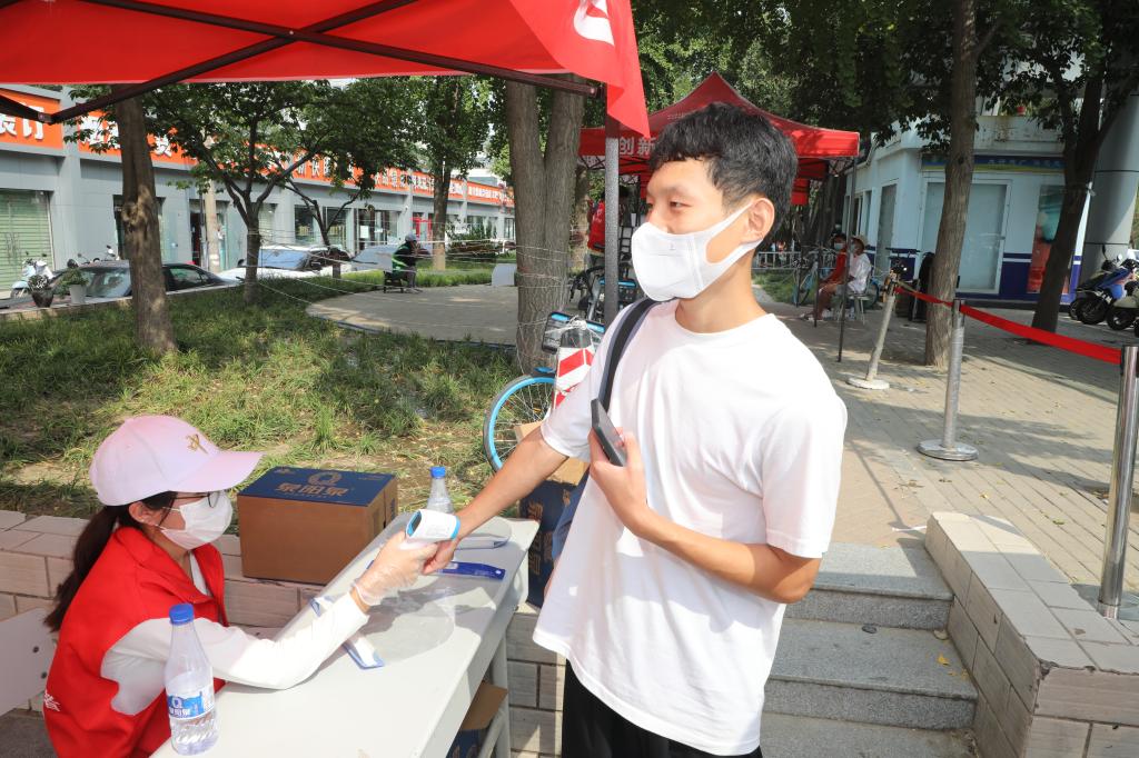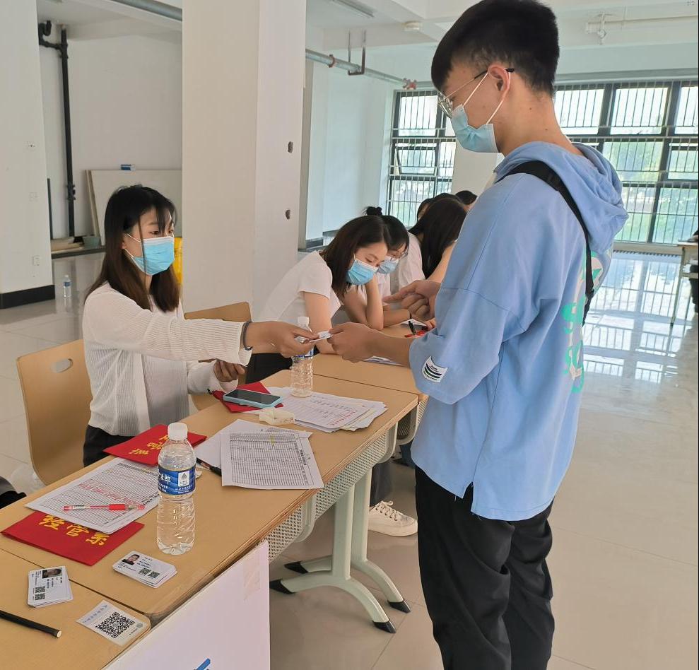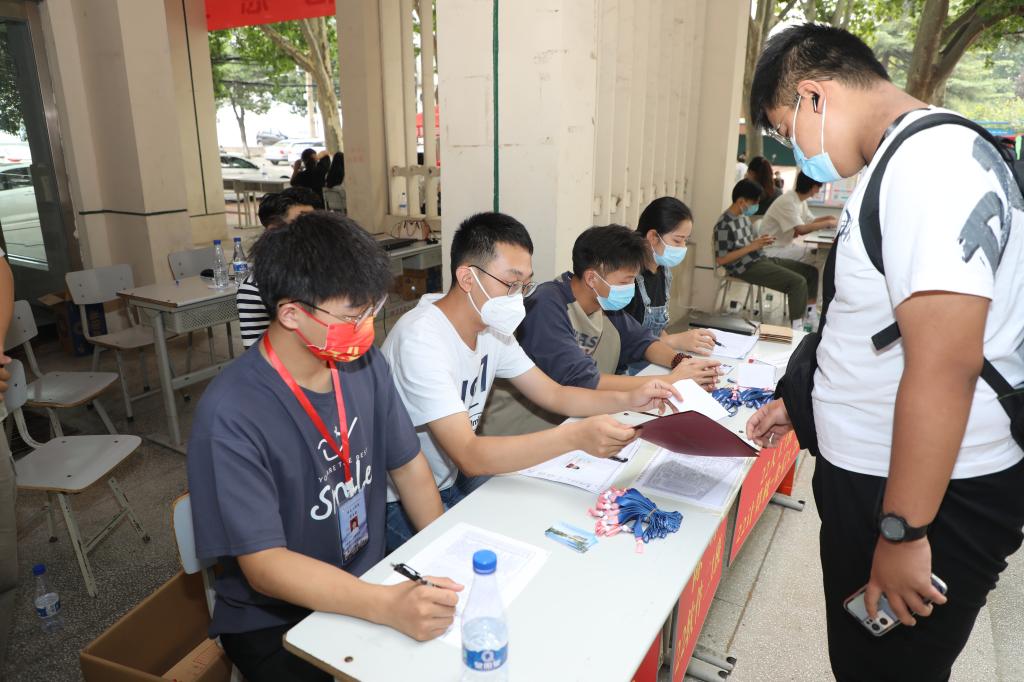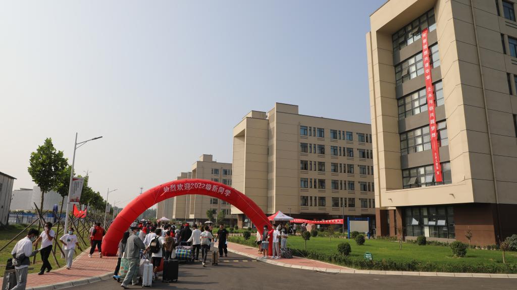 新生经过测温、扫码、消杀等系列流程进入学校。校内设置核酸检测点,第一时间为到校新生提供核酸检测服务。