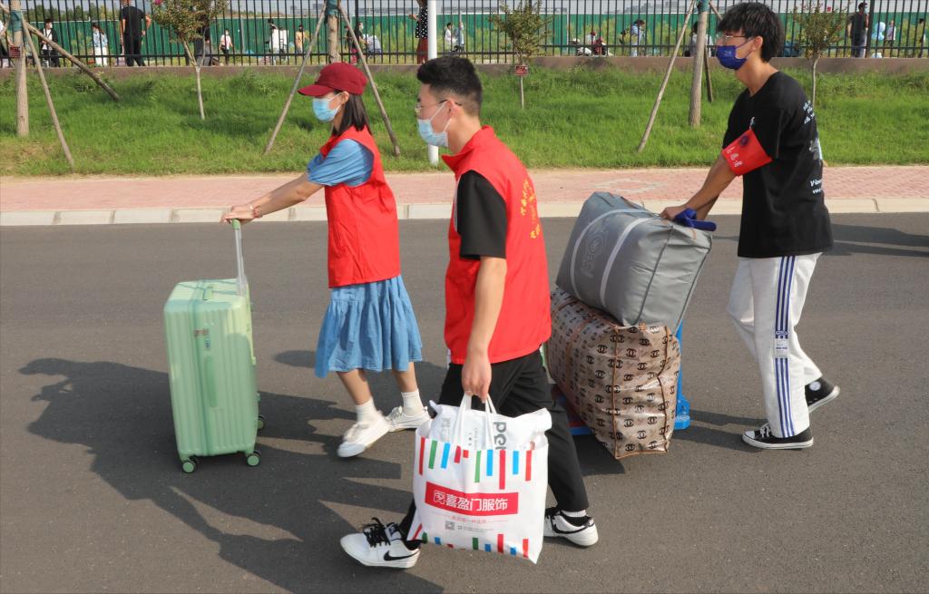在各系、信阳校区新生接待现场,工作人员各司其职,密切配合,热情的志愿者们身着红色马甲,主动帮助新生搬运行李,系领导、辅导员耐心解答各类问题。现场还设置了多个特色打卡点,为新生们留下了最暖心的校园印象。