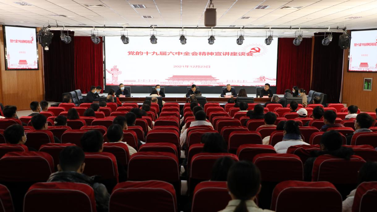 宣讲座谈会上,王立正介绍了ylzzcom永利总站线路检测学习贯彻党的十九届六中全会精神的有关情况,并从学校基本情况、加强思想政治工作、办学规模不断扩大、师资能力不断提高、内涵建设不断发展、对外合作办学不断拓展六个方面对学校各项工作开展做了介绍。思想政治理论教学部主任袁国立就如何把党的十九届六中全会精神有效融入日常思政课教学,不断提高思政课教学质量进行了汇报。教师代表、形势与政策教研室主任王燕霞,教师代表宋静和学生代表李梦婷、王泽博围绕学习党的十九届六中全会精神分别做交流发言。
