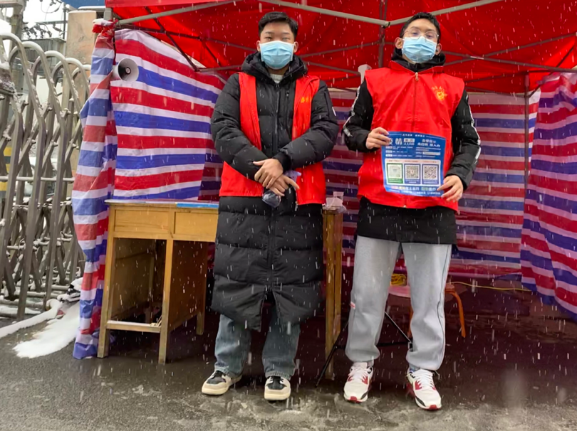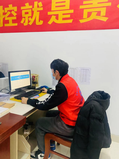 2020级水文1班学生牛印、刘翔宇在新乡市古固寨镇政府疫情防控办对返新人员进行分类和排查,向各村发送返新人员信息,协助各村进行疫情防控工作,对外来人员及车辆进行体温测量和登记。他们说:“坚定做志愿者的信心,配合疫情防控工作,为家乡贡献自己的力量。”