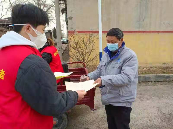 家住平顶山市鲁山县赵村乡中汤村的2021级机械-工程师1班学生李跃森,主动参加家乡疫情防控志愿活动,挨家挨户为社区及街道居民普及疫情防控知识,引导大家少出门,加强个人防护;并在多个防控点对来往车辆进行登记,排查流动人员信息、测量体温。他说:“我希望中国能够快速战胜疫情,希望中国人民平安快乐,中国加油!中国必胜!”