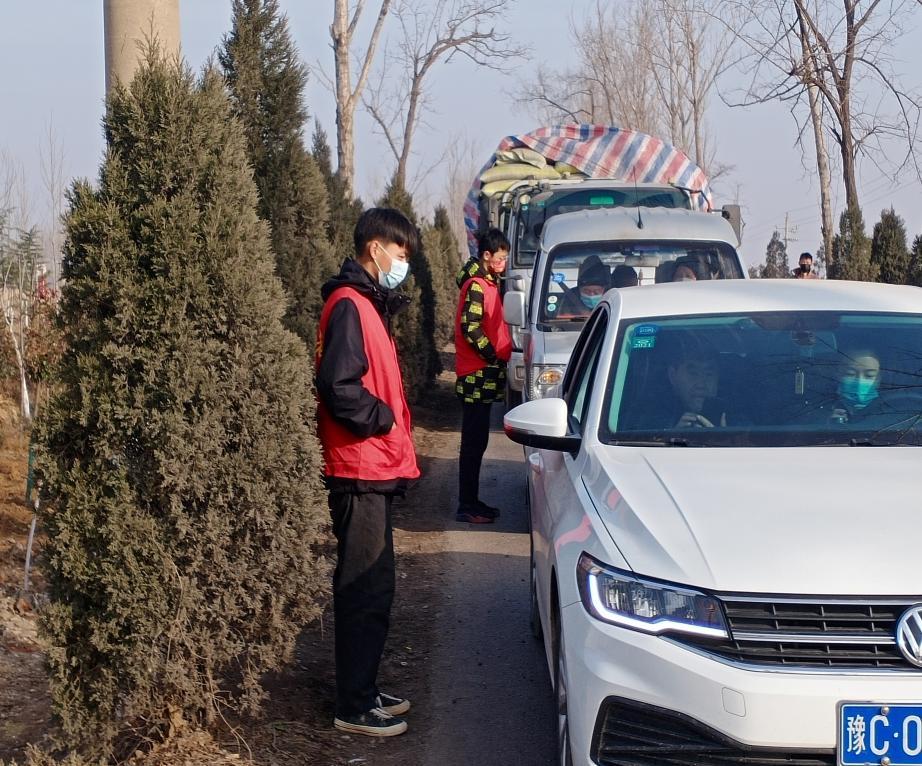 2021级机电3班学生仝晨晨在周口市太康县马厂镇黄庄行政村积极参与疫情防控志愿服务活动,负责登记过往人员信息、测量体温、查看健康码及行程码等工作,他说:“天气虽然很冷,但村民的笑容是暖的。”