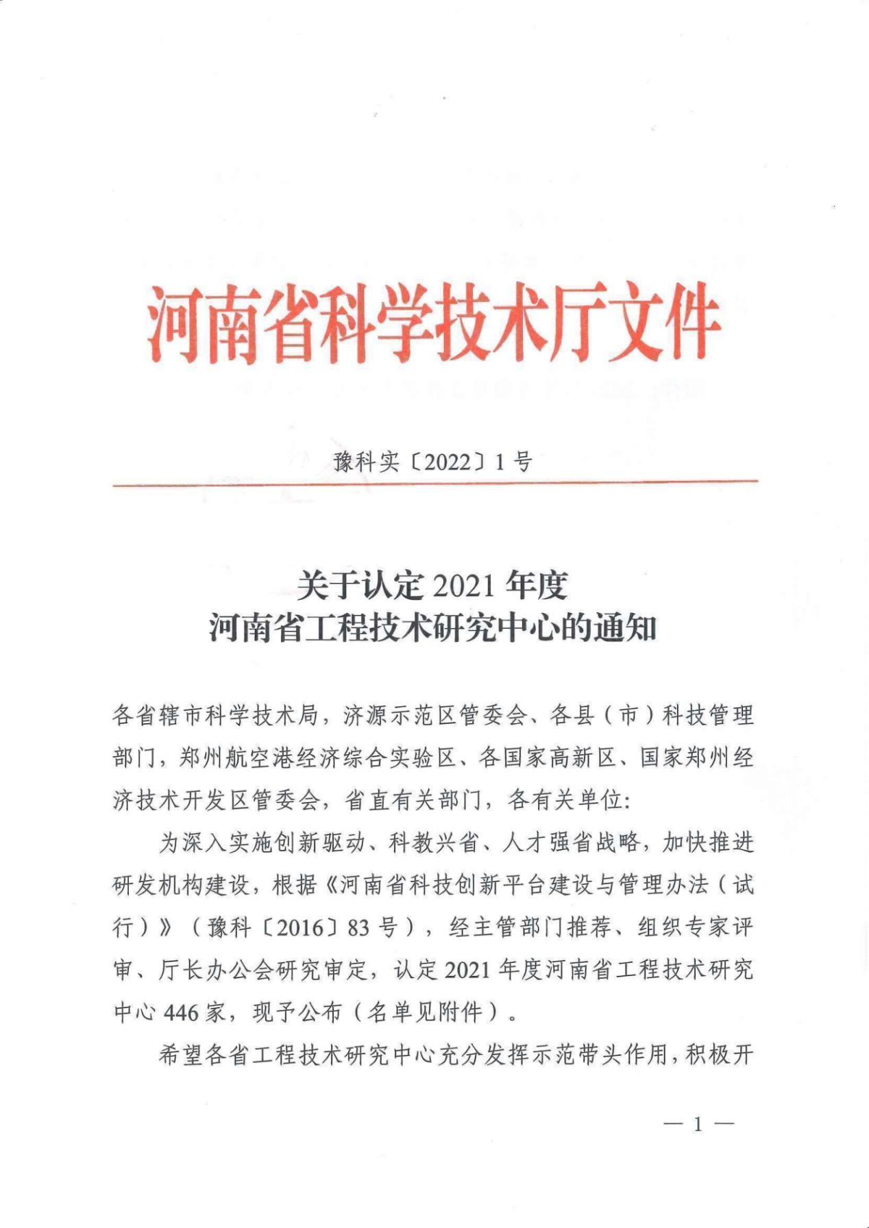 近日,河南省科技厅发布《关于认定2021年度河南省工程技术研究中心的通知》,由副校长张凌杰教授主持申报的河南省水利智能感知与控制工程技术研究中心获批认定。