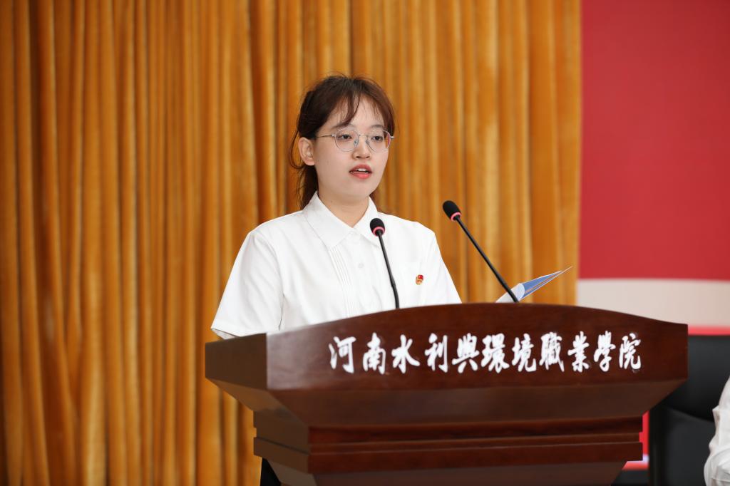 2022级水利工程系学生厉语珊作为新生代表发言。她表达了对人生新征程的憧憬和期待,表示天道酬勤,厚德载物,将一如既往的勤学善问,积极上进,并号召全体新生无惧挫折,制定明确目标,做有远大理想抱负、深厚家国情怀、有担当有作为的青年。