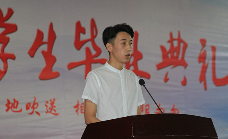 毕业生代表、机电与信息工程系学生雷佳鹏发言