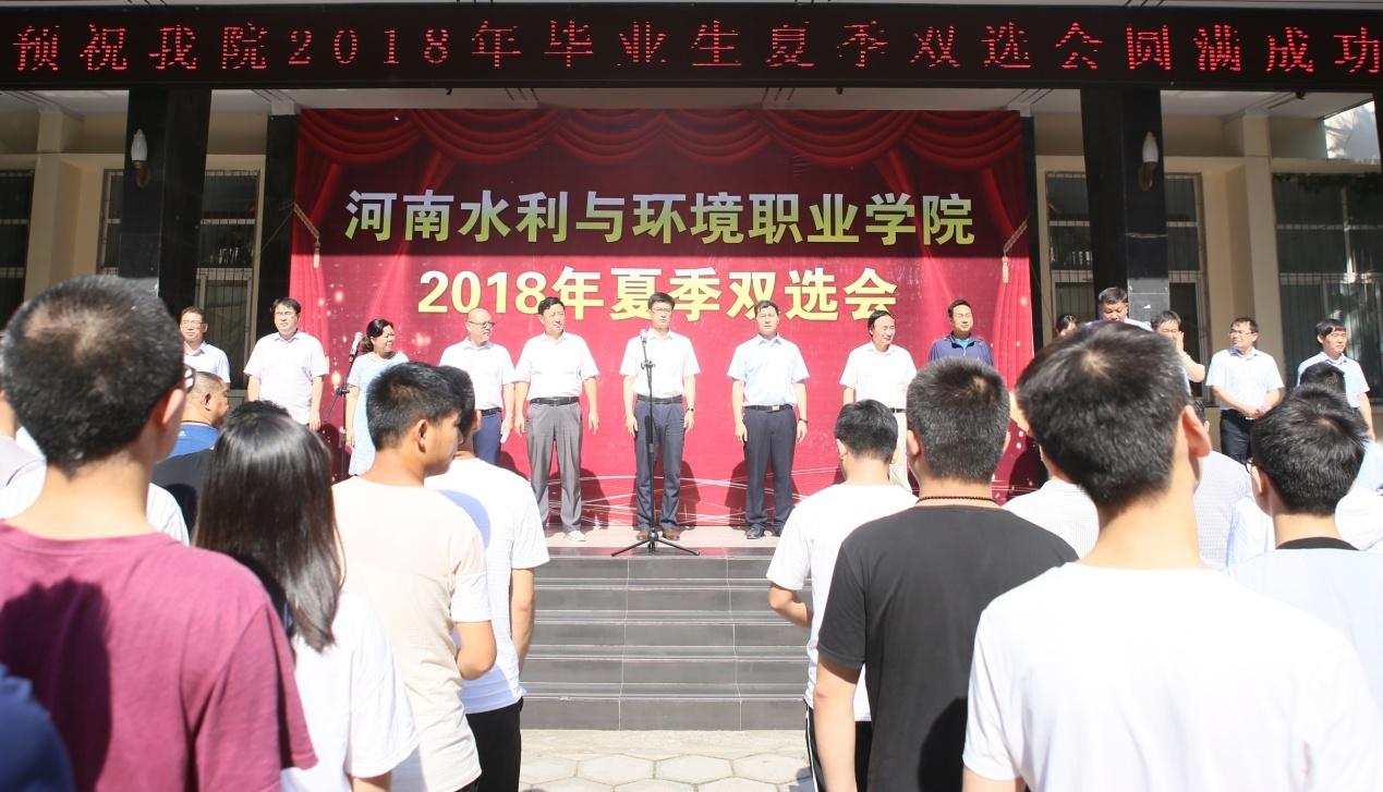 2018年6月13日,我院隆重举行2018年毕业生夏季双选会。河南省大中专学生就业服务中心就业创业指导部主任文正建及部分高职院校代表,我院院长郑志宏,副院长黄功学、蒋彦成、各系部主要负责人出席双选会开幕式,来自全国各地的160多家用人单位及2800余名毕业生参加双选会。开幕式由招生就业指导中心主任何占周主持。