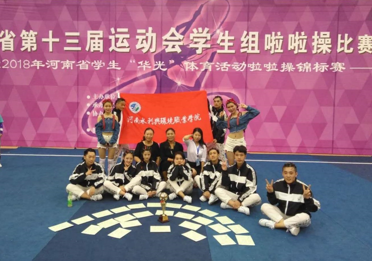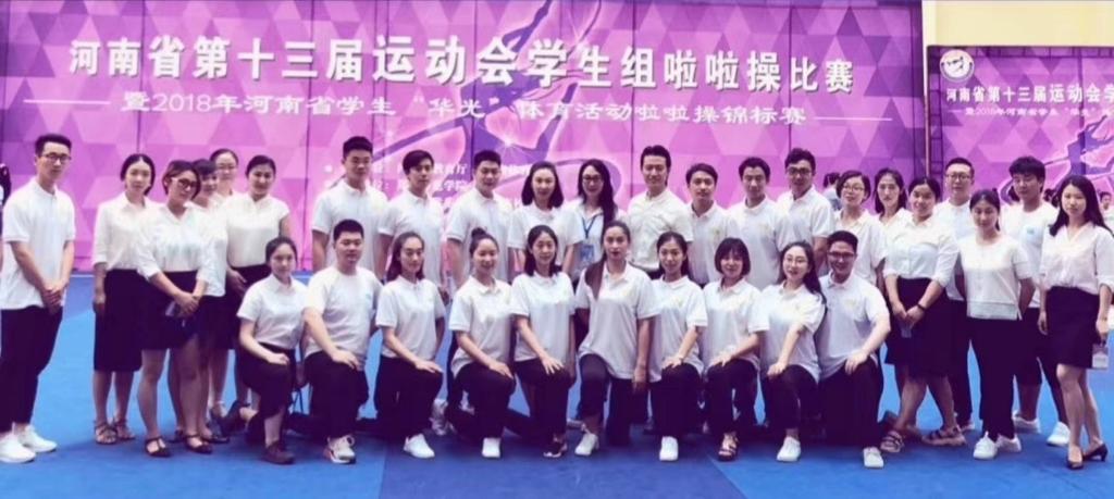 河南省第十三届运动会学生组啦啦操比赛暨河南省学生“阳光”体育活动啦啦操锦标赛于2018年7月8-10日在郑州师范学院举办。我院代表队11人在领队李保海,教练员王少娟、宋 瑾、王 蕊的带领下参加了爵士、街舞啦啦操项目的比赛。