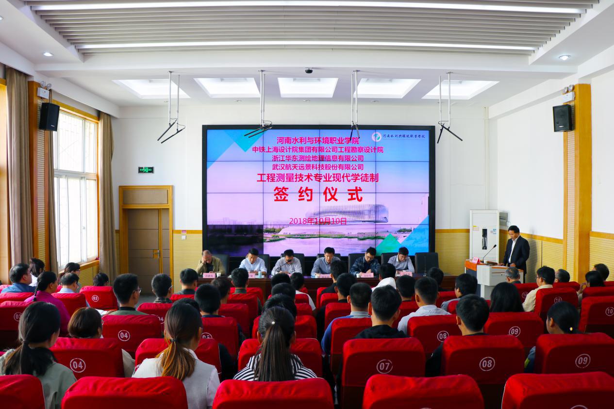 签约仪式上,我院分别与中铁上海设计院集团有限公司工程勘察设计院、浙江华东测绘地理信息有限公司、武汉航天远景科技股份有限公司签署了《现代学徒制培养模式改革与实践校企合作协议》、《现代学徒制试点项目招生招工协议》和《现代学徒制试点三方协议》。