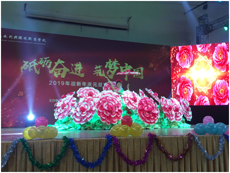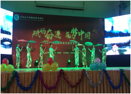 2018年12月25日下午,由院工会主办,各处室、系部协办的2019年迎新年庆元旦教职工联欢会在学院大礼堂举行,全院1000余名师生员工观看了演出。院纪委书记、工会主席李连水代表学院领导班子致新年贺词。