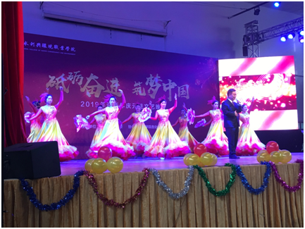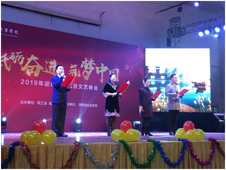 回望建校63年来的发展,特别是改革开放40年以来的发展历程,展望未来,弘扬主旋律,凝心聚力,再创辉煌,是本次联欢会筹划的主旨。学院领导高度重视,各部门积极组织,全校职工积极参与,利用休息时间编排创作,共报送节目21个,节目类型涵盖舞蹈、独唱、相声、合唱、诗朗诵、乐器演奏等,有220余名教职工参演,是学院有史以来参演人数最多、节目类型最多的一场展示教职工积极向上精神风貌的盛会。演出过程中掌声笑声不断,师生共同渡过了一段欢乐的时光。