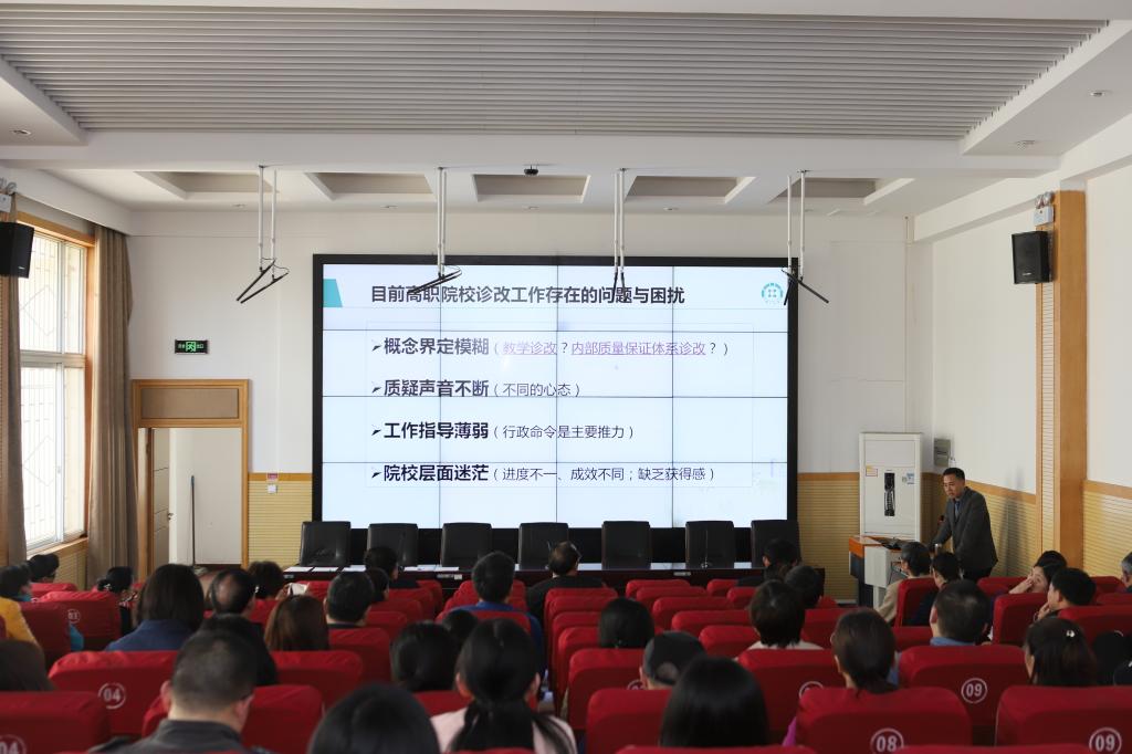 讲座后,副院长黄功学作重要讲话。他指出:内部质量保证体系诊断与改进工作是一项系统性很强的工作,是省级优质校项目建设重点建设内容之一,涉及学院每个部门、每名教职员工;学院将有序推进诊改各个方面工作,实施工作任务清单、定期通报制度;每位教职员工要积极参与诊改工作,及时完成相关工作任务,为提高人才培养质量和学院跨越式发展作出贡献。