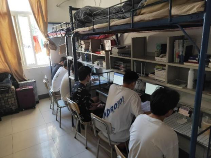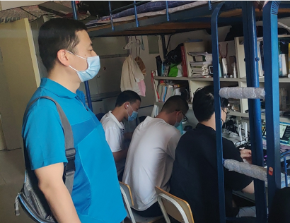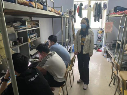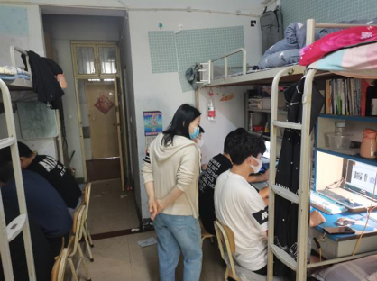 为保证网课质量,巡课组老师深入学生宿舍,帮助服务学生网上学习。在大家的共同努力下,教学秩序井然,学生静心上课。