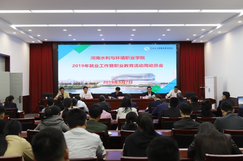 5月7日下午,我院在学术报告厅召开了2019年就业工作暨职业教育活动周动员会,院长郑志宏,副院长黄功学、蒋彦成,有关处室、校企合作公司负责人,各系党总支书记、主任、就业专干、辅导员、班主任参加会议。会议由黄功学主持。