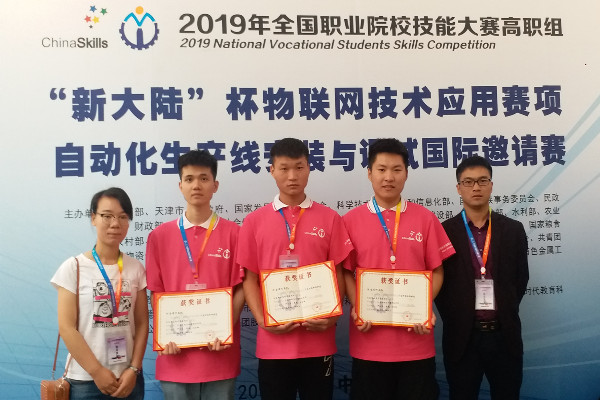5月7日,全国职业院校技能大赛“物联网技术应用”赛项在天津中德应用技术大学开赛。我院机电与信息工程系魏素盼老师和时生乐老师辅导的17级物联网专业尹汉东、17级计算机专业刘奕铄、17级电气自动化专业景遨等3名同学代表河南省参加竞赛。经过四个小时的激烈角逐,最终在全国104支参赛队中以第36名的好成绩获得三等奖。