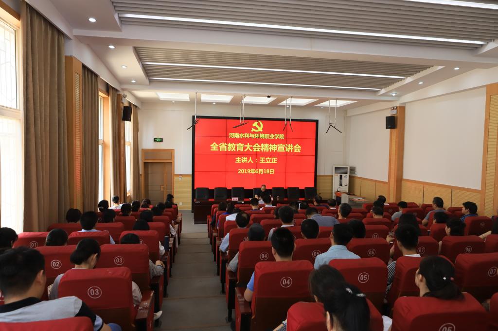 6月18日,我院举行学习贯彻全省教育大会精神宣讲会,会议由院党委书记王立正主讲,副院长蒋彦成主持。学院领导班子成员、全体教职工及部分学生代表参加会议。