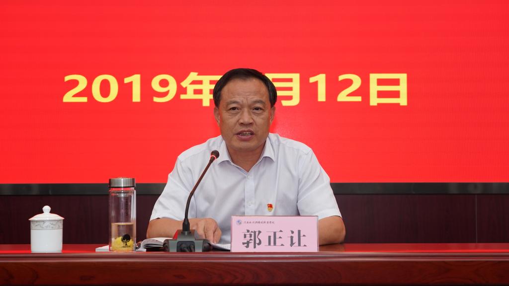 郭正让组长发表讲话。他首先传达了省委和高校工委、教育厅关于开展“不忘初心、牢记使命”主题教育的最新精神和要求,并介绍了省委高校工委巡回指导组的六项职责任务,并就学院开展主题教育提出明确要求:一要提升政治站位。增强搞好主题教育的政治责任感和使命感,以更加务实的作风和有效的举措抓紧抓实抓到位,确保主题教育取得实实在在的成效。二要把握总体要求。结合本校本部门本单位实际,注重解决实际问题,注重开门搞教育,让广大师生切实感受到主题教育带来的新变化新成效。三要突出重点对象。领导班子以身作则,率先垂范,统筹抓好基层党支部主题教育,抓实基层党支部的学习教育和检视整改。普通党员重点学好理论,对照党章党规检视整改,增强守初心、担使命的思想自觉和行动自觉。四要加强分类指导。统筹把握校级领导班子、中层领导班子和教师党员、学生党员等不同特点,着力整改解决党委领导下的校长负责制、基层党组织建设、教师队伍建设、意识形态工作、学生社团工作中存在的突出问题。五要解决突出问题。发扬刀刃向内的自我革命精神,对表对标找差距,畅通渠道听意见,拿出破解问题的实招、硬招,让广大师生切实感受到主题教育带来的新变化新成效。六要落实主体责任。把开展主题教育作为重要政治任务,切实扛起政治责任,加强领导指导,精心组织推动,层层压实责任,大力倡树“五比五不比”的工作导向,以好的作风确保主题教育取得好的效果。郭正让强调,在全党开展“不忘初心、牢记使命”主题教育,是党中央作出的一项重大部署,也是当前和今后一段时间我们政治生活中的一件大事,大家要以高度的政治责任感和良好的精神状态,认真组织好、完成好主题教育各项任务,以优异的成绩向省委交上一份满意的答卷,为奋力谱写新时代中原更加出彩的绚丽新篇章作出新的更大贡献。