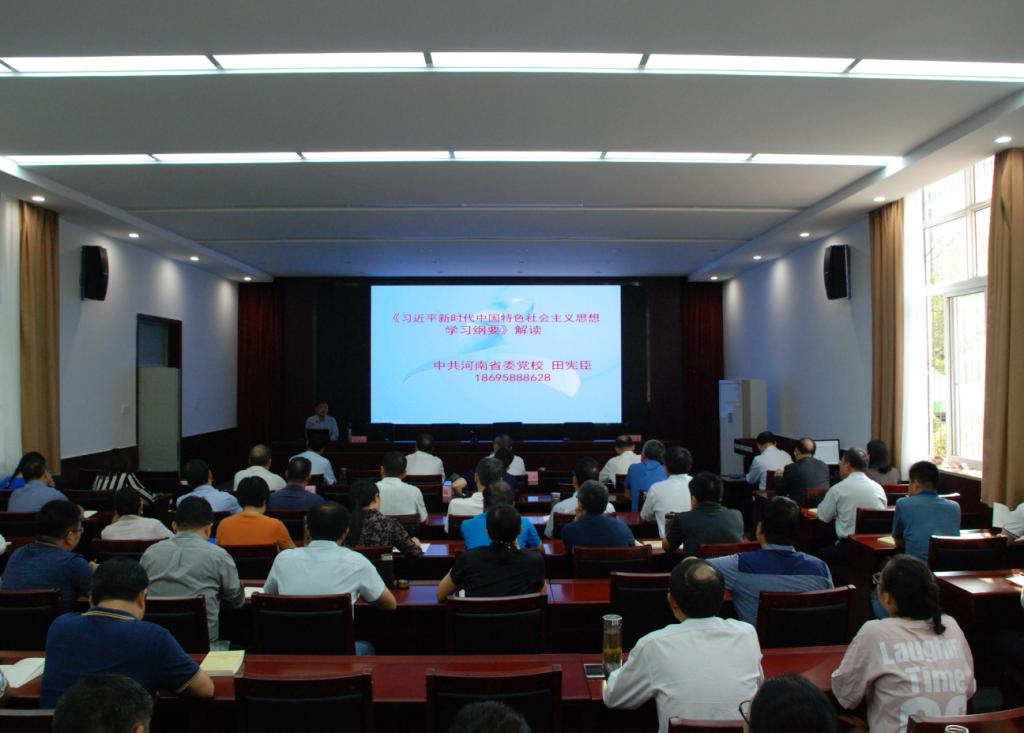 此次集中学习研讨通过专家讲座、观看专题视频、交流研讨和自学等方式进行。一是邀请河南省委党校哲学教研部主任田宪臣教授作专题讲座,对《习近平新时代中国特色社会主义思想学习纲要》进行深入解读;二是集中观看了全国政协常委兼副秘书长、中国教育协会学术委员会顾问朱永新的题为《未来学校与未来大学——重新定义教育》的视频讲座;三是邀请河南省委党校党建部樊金山教授作了题为《守初心担使命 勇担当有作为》的专题报告,从全新的角度阐述了中国共产党人的初心和使命以及开展主题教育的迫切需要,加深了党员干部对习近平新时代中国特色社会主义思想的理解;四是以学校领导班子、各二级单位领导班子为单位,围绕党的政治建设、全面从严治党、理想信念、宗旨性质、担当作为、政治纪律和政治规矩、党性修养、廉洁自律等 8 个方面,分16个小组展开专题研讨。