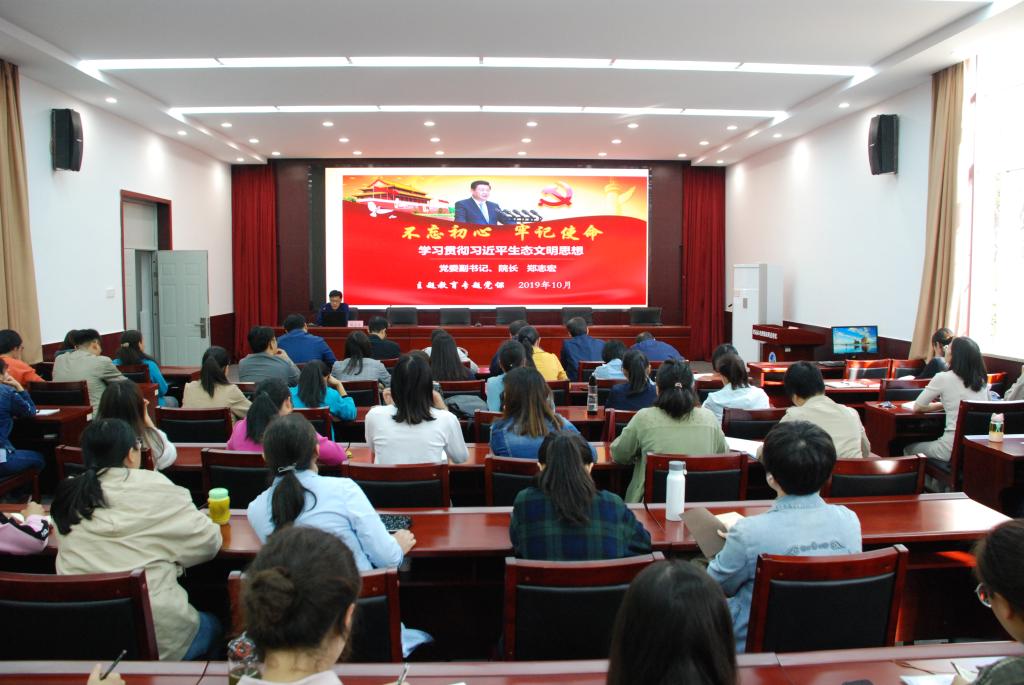 党委副书记、院长郑志宏为水利工程系党总支、环境工程系党总支全体党员作了题为《不忘初心,牢记使命,学习贯彻习近平生态文明思想》的专题党课。郑志宏从习近平生态文明思想产生的背景、主要内容、重大意义、习近平关于黄河流域生态保护和高质量发展重要讲话精神、学校科学发展路径等五个方面,结合当前学校发展和建设实际,深刻传达并解析了习近平总书记关于黄河流域生态保护和高质量发展座谈会精神。郑志宏强调,作为水利行业院校,要认真学习领悟和把握习近平生态文明思想,用新思想引领学校改革创新,服务区域、流域经济建设和社会发展。一是科学设置专业,走特色发展之路;二是改造传统专业,赋予其新的活力;三是将创新、绿色的发展理念融入到各专业的建设中去;四是深化产教融合、校企合作、推进科研平台建设;五是围绕防洪安全、饮水安全、生态安全等方面凝练教学科研团队,培育教学科研项目,提升学校整体内含实力;六是建立水文化研究中心。