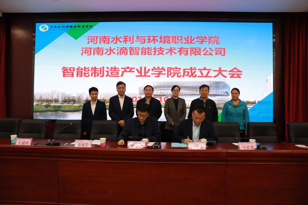 武凤翔在会上表示产业学院要在学校党委和理事会的领导下,将智能制造产业学院建设成水环学院品牌,为学院争创全国水利优质校、省优质校和省高职双高建设做出最大贡献。河南水滴智能技术有限公司总经理马蕾蕾表示成立智能制造产业学院,标志着校企双方合作站在了新的历史起点上,将积极调动公司资源,坚持产学研相结合,促进产教深度融合,推动智能制造产业学院更快更好发展。