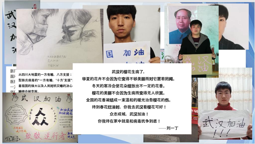 【关键词】奉献 守护 水利工程系党员教师寇自洋,第一天就冲在了所在村庄的抗疫第一线,修理宣传设备、对外地来村人员进行劝返、为出入人员和车辆测量体温、进行消毒、向村民讲解疫情防控的重要性、戴口罩的重要性,并主动将自家的钢板房无偿提供给村委会防控抗疫使用。同时,他还发动学生通过素描、水粉画、录制VCR、捐款等方式为武汉加油、为抗疫助力,用实际行动影响着身边每一个人。