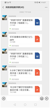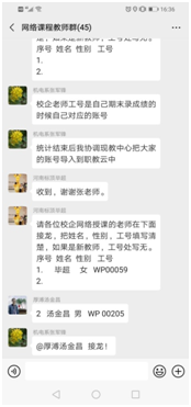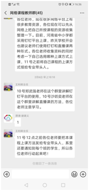 在确定了第一阶段网课后,要上网络课的老师立即建立微信群,在群里就网络上课方式进行讨论。