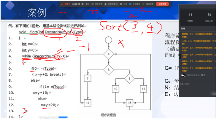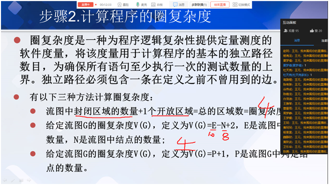 虽是“主播”,但教师身份不改,教师的使命不能忘。每当将知识点与学习方法、生活联系起来讲解,学生听到心坎里去了,点赞数直线上升。例如讲白盒测试综合应用,扩展“以点带面”的学习方法,同时联系生活,生活中许多事情和其他学科的学习都可以用“以点带面”的方法分析。学生们学到了知识,同时知道用什么方法思考,授人以鱼不如授人以渔。