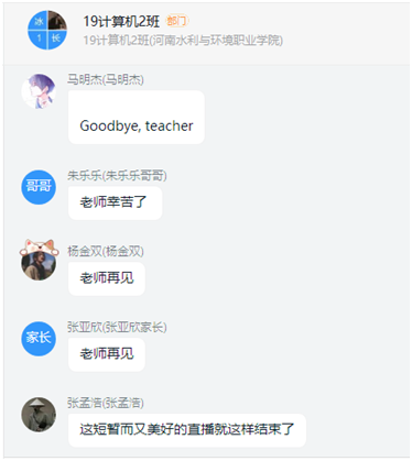 每当我对学生们讲到,老师做“主播”虽然没有专业的设备和环境,只是在家里找一个没人的相对安静的房间直播上课,但老师可以做到足够的敬业。只要一进入直播状态,不管外界环境怎样嘈杂,家里孩子怎么哭闹,为了学生都可以做到专一投入!学生们也很懂事,体谅的说“老师辛苦了”!课程讲解结束,学生们都会在群里对我说“老师再见”“老师辛苦了”,令我倍感温暖。