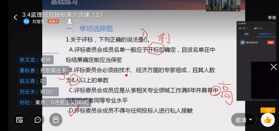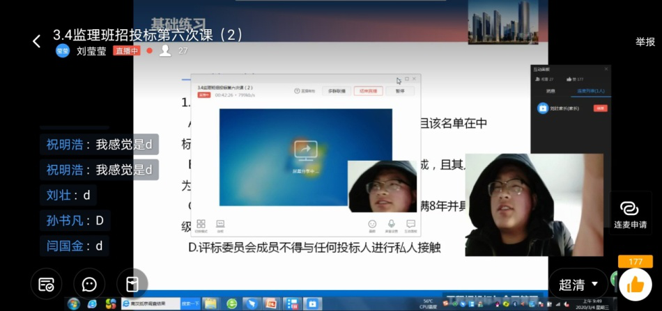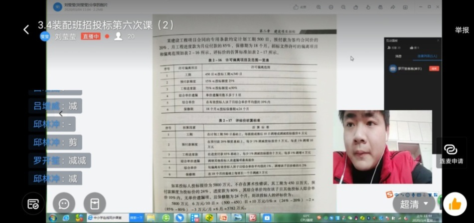 由于前期的准备充分,刘老师在上钉钉直播课程时,不是单纯的讲课、念PPT,而是在讲完一个知识点后,把之前搜集到的相关工程案例和视频资源展示给学生看,直播过程中与学生互动,学生们积极的通过连麦的方式参与到直播课的讨论中。课后,在职教云上给学生留作业,加强学生对当天学习内容的练习。精彩课堂的背后是艰辛的付出,由于白天要照顾父亲,刘老师大部分时间在晚上给学生批改作业、搜集资料、准备素材,有时忙到晚上一两点。