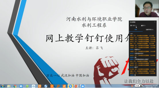 为确保线上教学工作的顺利开展,水利工程系成立了线上教学技术指导组对相关教师进行线上教学培训,吕飞老师作为线上教学指导组成员,全程参与了网上教学前期筹备工作以及教学过程中的技术服务,包括线上平台的选择、线上教学技术培训以及线上教学过程中对于其他老师的问题进行答疑解惑。