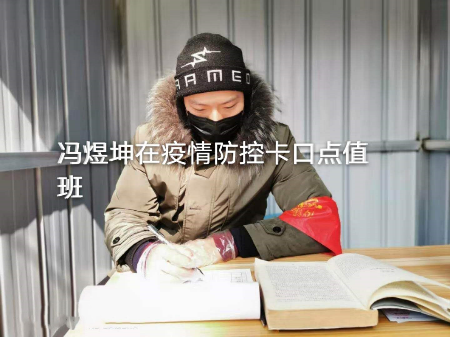 自2月11日以来,冯煜坤先后到当地防疫站、龙湖宾馆、龙湖佳苑、七一路等4个社区开展志愿服务,在参加志愿服务期间,全身心投入到疫情防控工作中,坚守抗疫一线。平日里除了给所服务社区的居民帮忙采购生活必需品之外,遇到需要帮助的其他人,冯煜坤也是一腔热情随时伸出援助之手,教大叔用共享电瓶车,帮孤寡老人提重物、换煤气等等,不辞辛劳,甘于奉献,用实际行动诠释着新时代的青春力量和责任担当,充分展现了新时代大学生的风采。